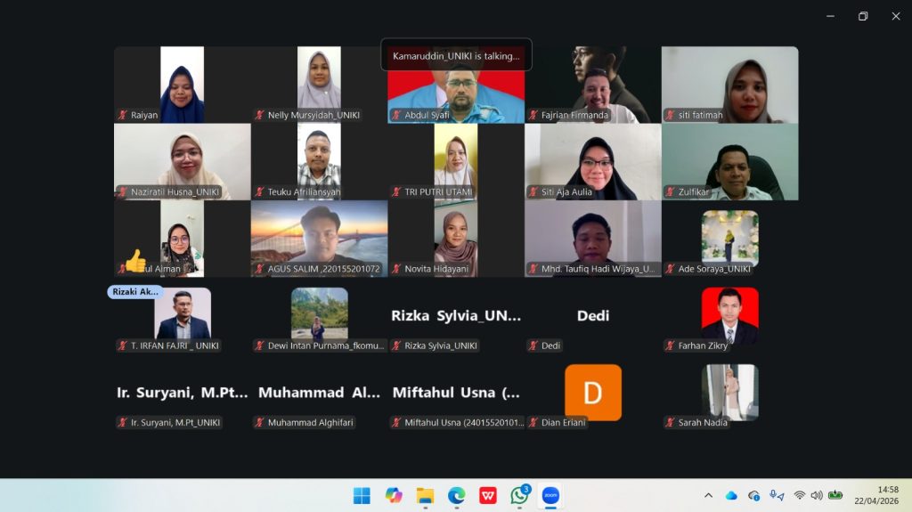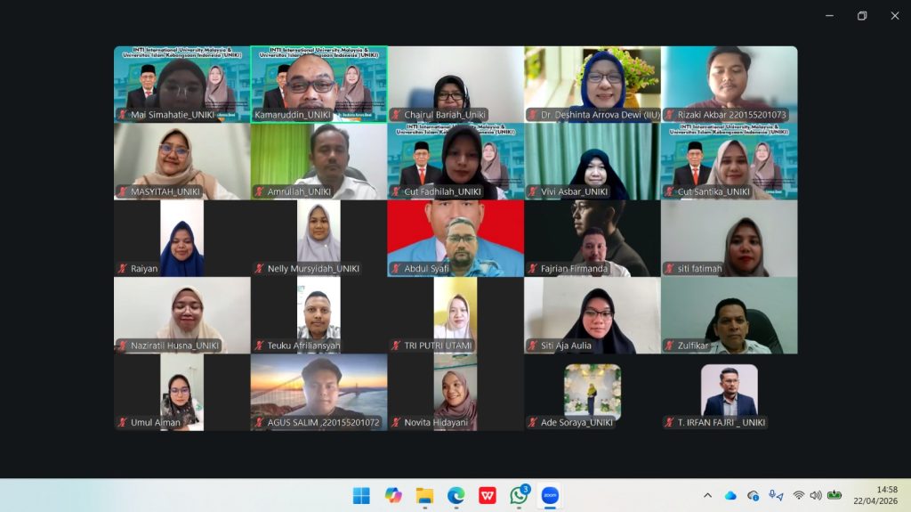 Bireuen Rabu, 22 April 2026 — Universitas Islam Kebangsaan Indonesia (UNIKI) bersama INTI International University Malaysia menggelar seminar internasional secara daring melalui Zoom dengan tema “Collaboration Meeting”. Kegiatan ini menjadi wadah strategis dalam mempererat kerja sama akademik lintas negara, khususnya di bidang pendidikan, penelitian, dan pengabdian kepada masyarakat. Rabu, 22 April 2026