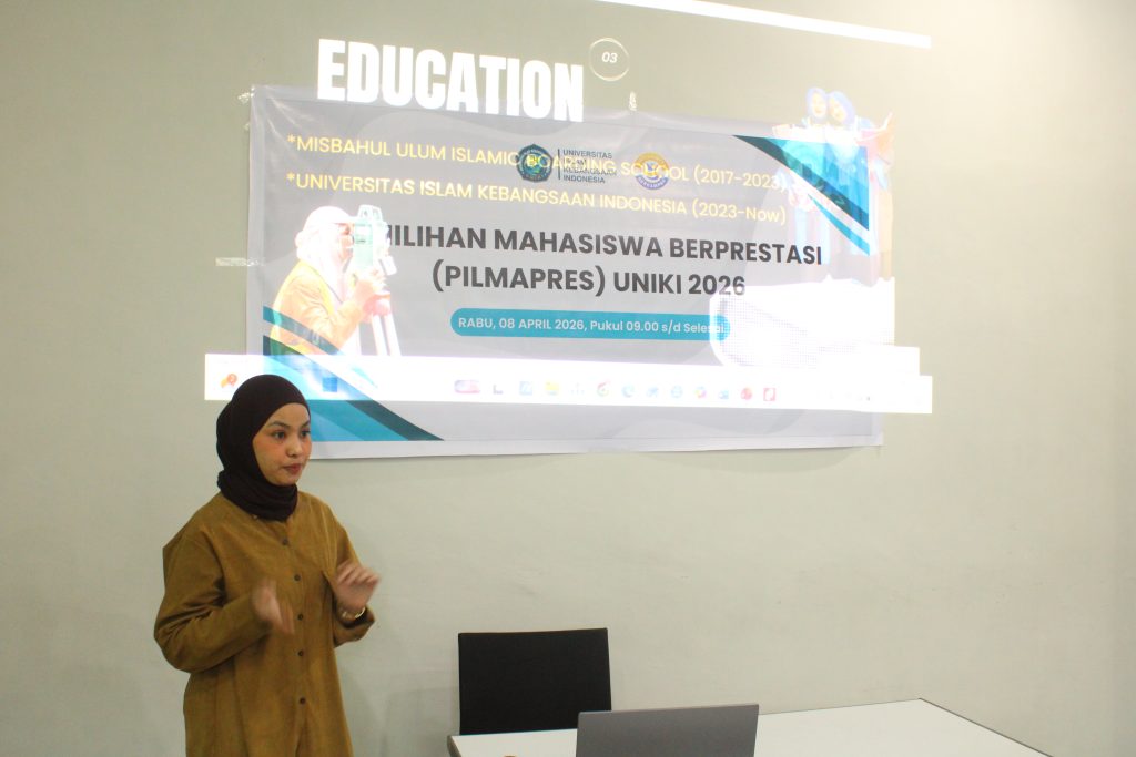 Bireuen – Universitas Islam Kebangsaan Indonesia (UNIKI) resmi mengirimkan satu nama terbaiknya untuk mengikuti ajang Pemilihan Mahasiswa Berprestasi (Pilmapres) tingkat nasional tahun 2026. Sosok tersebut adalah Nazla Asyifa, mahasiswa Semester VI Program Studi Teknik Sipil yang berhasil lolos dari serangkaian seleksi ketat di tingkat universitas. (Selasa,14/4/2026)